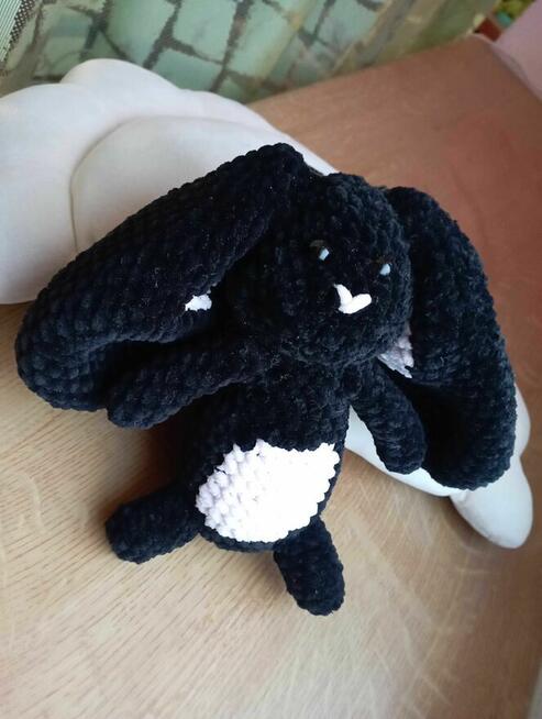 Ręcznie wykonana maskotka królik amigurumi Miękka, pluszowa maskotka amigurumi królik w kolorze czarnym, wykonana ...