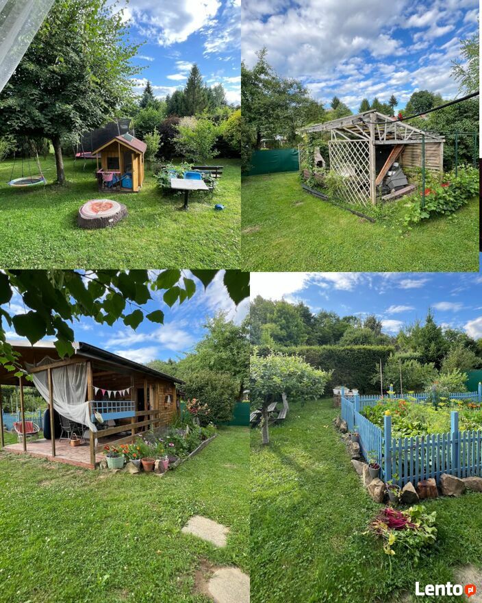 Ogródek działkowy o powierzchni około 8 arów, ul. Spokojna Krosno.Domek w pełni wyposażony, kuchenka, lodówka, naczynia. Studnia z wodą pitna (podciągnięta do domku), osobno podpięcie wody do podlewania. Prąd na działce. Duży taras, toaleta camperowa, dwa pomieszczenia na narzędzia. Dodatkowo wiata z grillem, miejsce na ognisko, plac zabaw dla dzieci, piaskownica, domek dla dzieci. Ogrodzony ogródek warzywny, maliny, porzeczki, trzy jabłonie i trzy obficie owocujące krzewy Borówki amerykanskiej. Bardzo dobrze utrzymana i zadbana. Tuż obok jeziorko pełne ryb. Roczny koszt utrzymania całości około 500 zł, możliwość podziału na dwie działki przez kupujących.