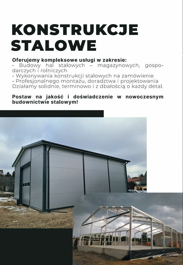 Jeżeli planujesz budowę hali stalowej, konstrukcji stalowej, hali magazynowej, hali rolniczej, wiaty lub garażu stalowego, zapraszamy do kontaktu.