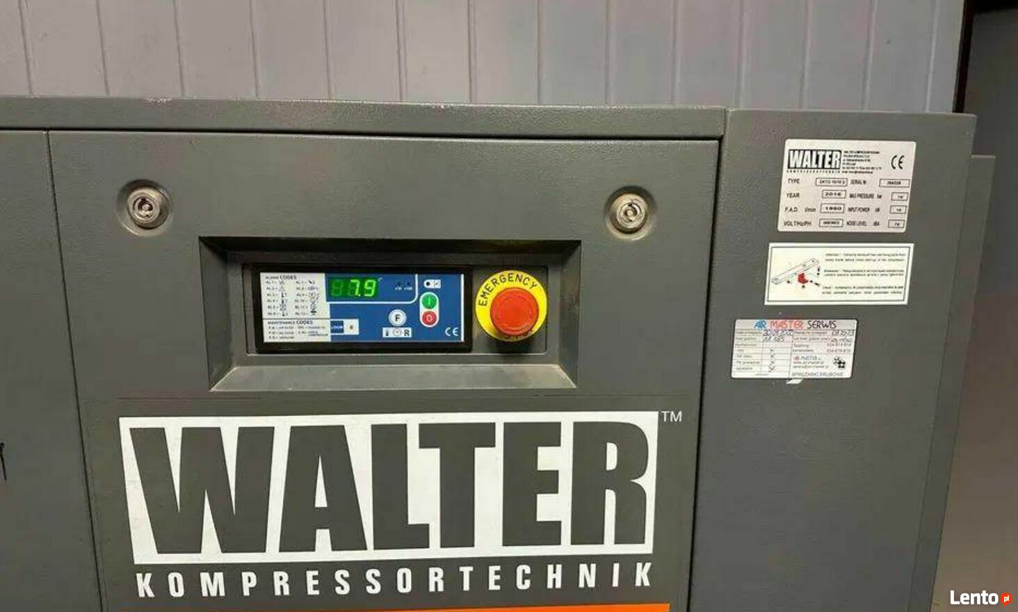 Sprzedam kompresor śrubowy renomowanej marki WALTER, model SKTG 15 S, rok produkcji 2016. Urządzenie było regularnie serwisowane. Stan techniczny: lekko uszkodzona obudowaParametry techniczne:
