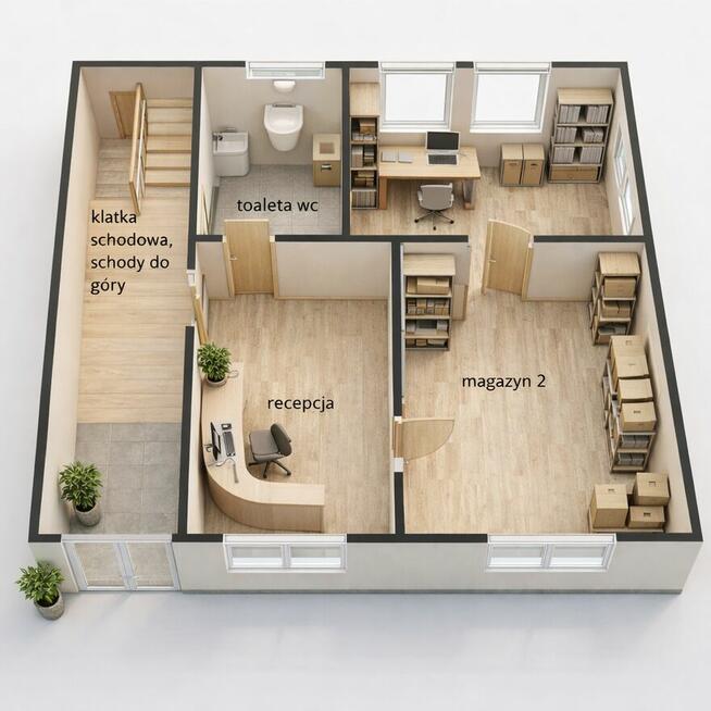 Na pierwszym piętrze znajdują się pomieszczenia z dużym potencjałem adaptacyjnym – idealne do przekształcenia na ...