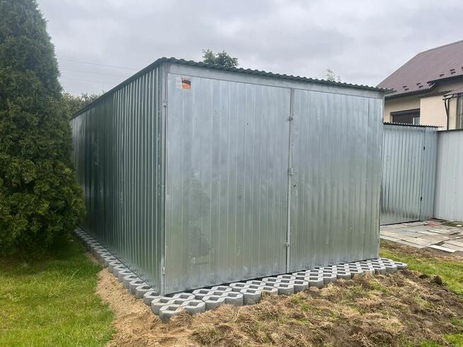 2Garaż blaszany 6x5 Dach dwuspadowy Konstrukcja z profila zamkniętego Blacha złoty dąb Kładziona poziomo (kolory do ...